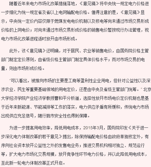 一部分電力資源定價(jià)將趨向市場(chǎng)化