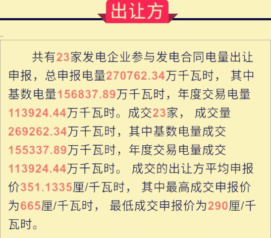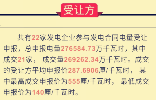 對(duì)本次電力交易,總共有23企業(yè)參與出讓申報(bào),總申報(bào)電量270762.34萬(wàn)千瓦時(shí),22加企業(yè)參與受讓申報(bào),總申報(bào)電量276584.73萬(wàn)千瓦時(shí)。