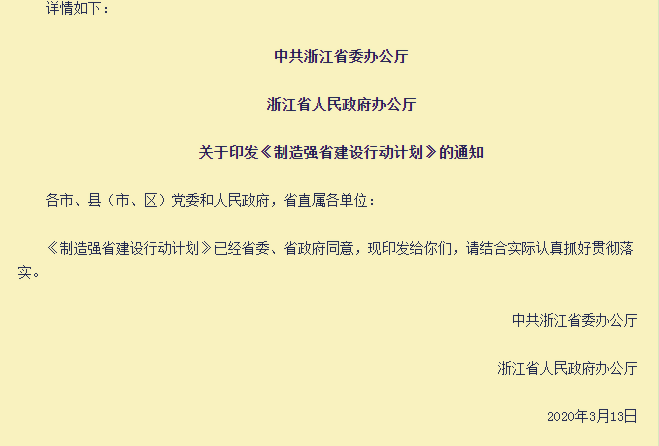 浙江省《制造強省建設行動計劃》的通知重點內(nèi)容如下: